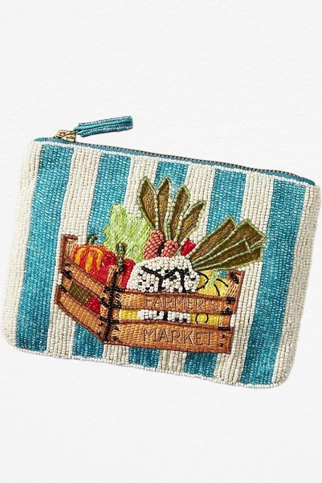 Each bead is hand-sewn by skilled artisans, ensuring no two pieces are exactly alike. The intricate details—from plump carrots and leafy greens to ripe tomatoes and corn—capture the warmth and joy of farm-to-table living. Finished with a secure zip closure and fully lined interior, this wallet is as practical as it is stylish.