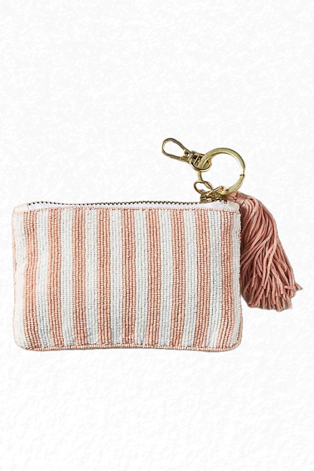 Accented with a matching beaded tassel and a gold-tone keyring clasp, it’s the perfect mini companion to clip onto your favorite tote or carry solo. Ideal for coins, lip balm, or small keepsakes, it combines function with handcrafted artistry.