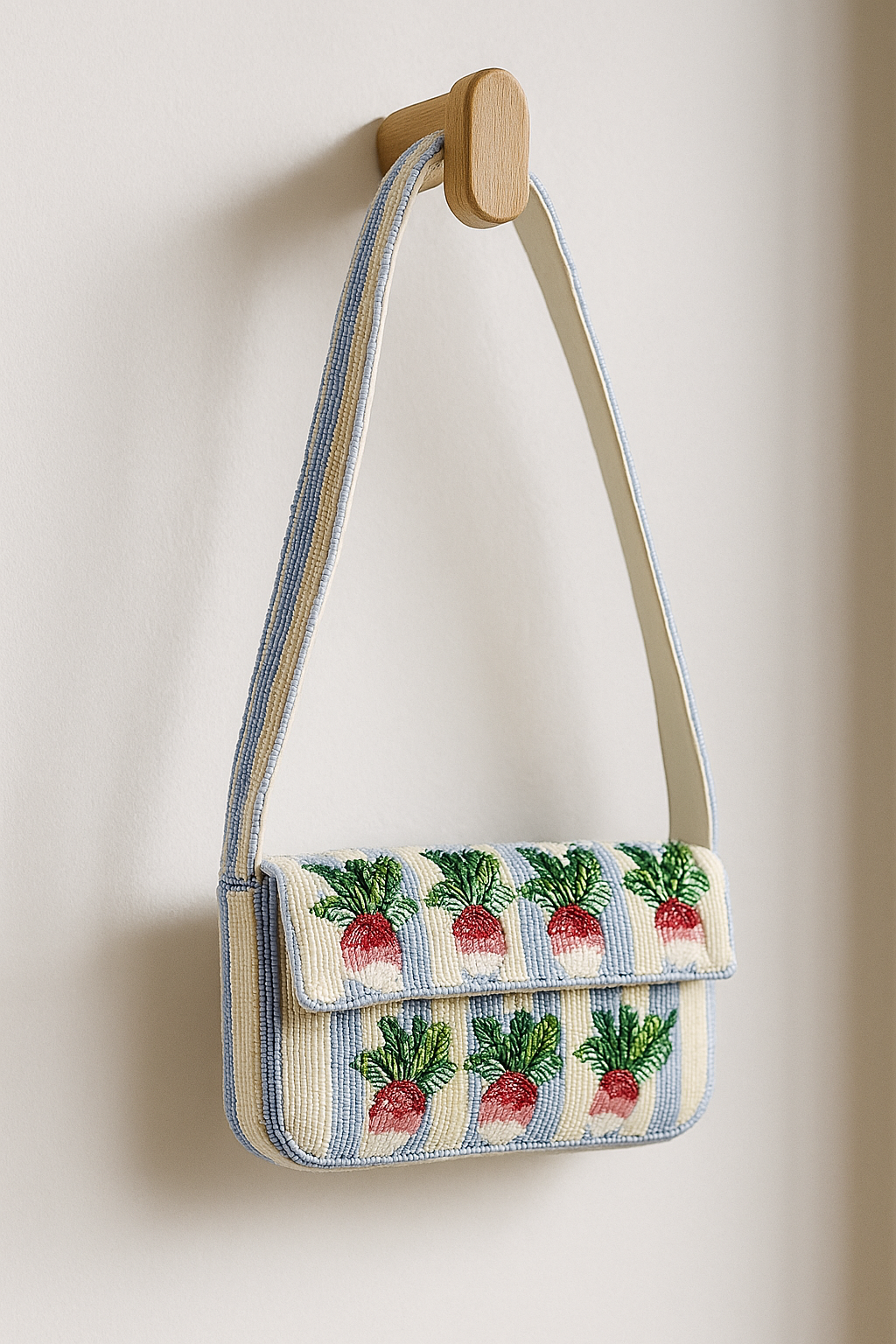 Bold, playful, and delightfully unique, the Zayana Beaded Bag – Radish takes inspiration from garden harvests and transforms it into wearable art. Featuring intricate beadwork in vibrant red and green tones, this statement bag celebrates nature’s charm with a whimsical twist.